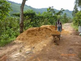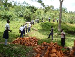 Juni 2013: Es werden die Backsteine für den Bau hergestellt und weitere Steine gesammelt (im Bild oben rechts ein Brennofen für Backsteine).